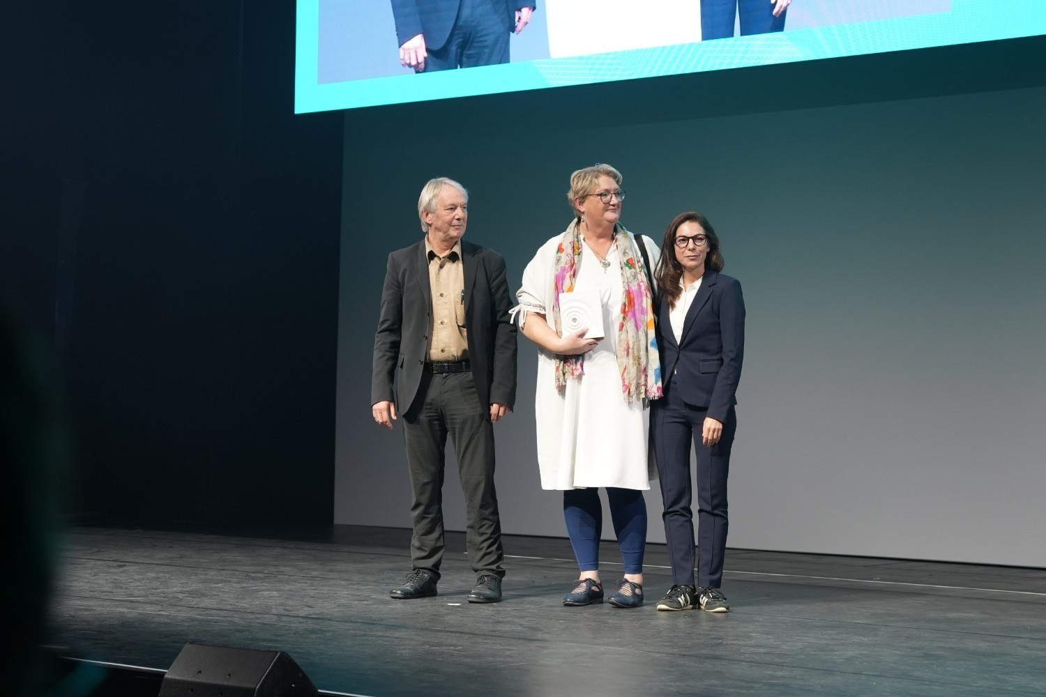 Alle Preisträgerinnen und Preisträger des 31. Niedersächsischen Medienpreises vereint auf der Bühne des Schauspielhauses Hannover, Foto: Henning Scheffen