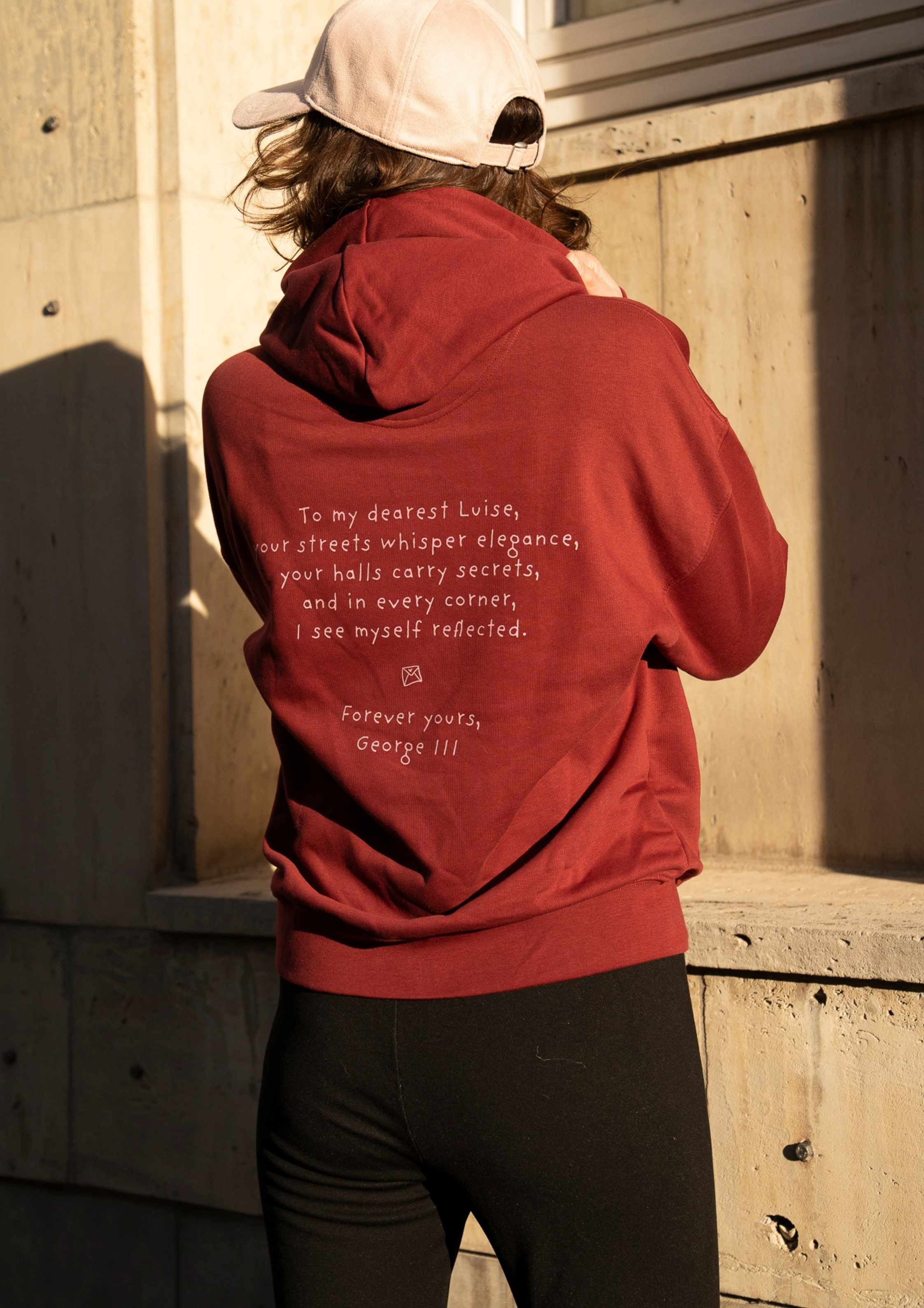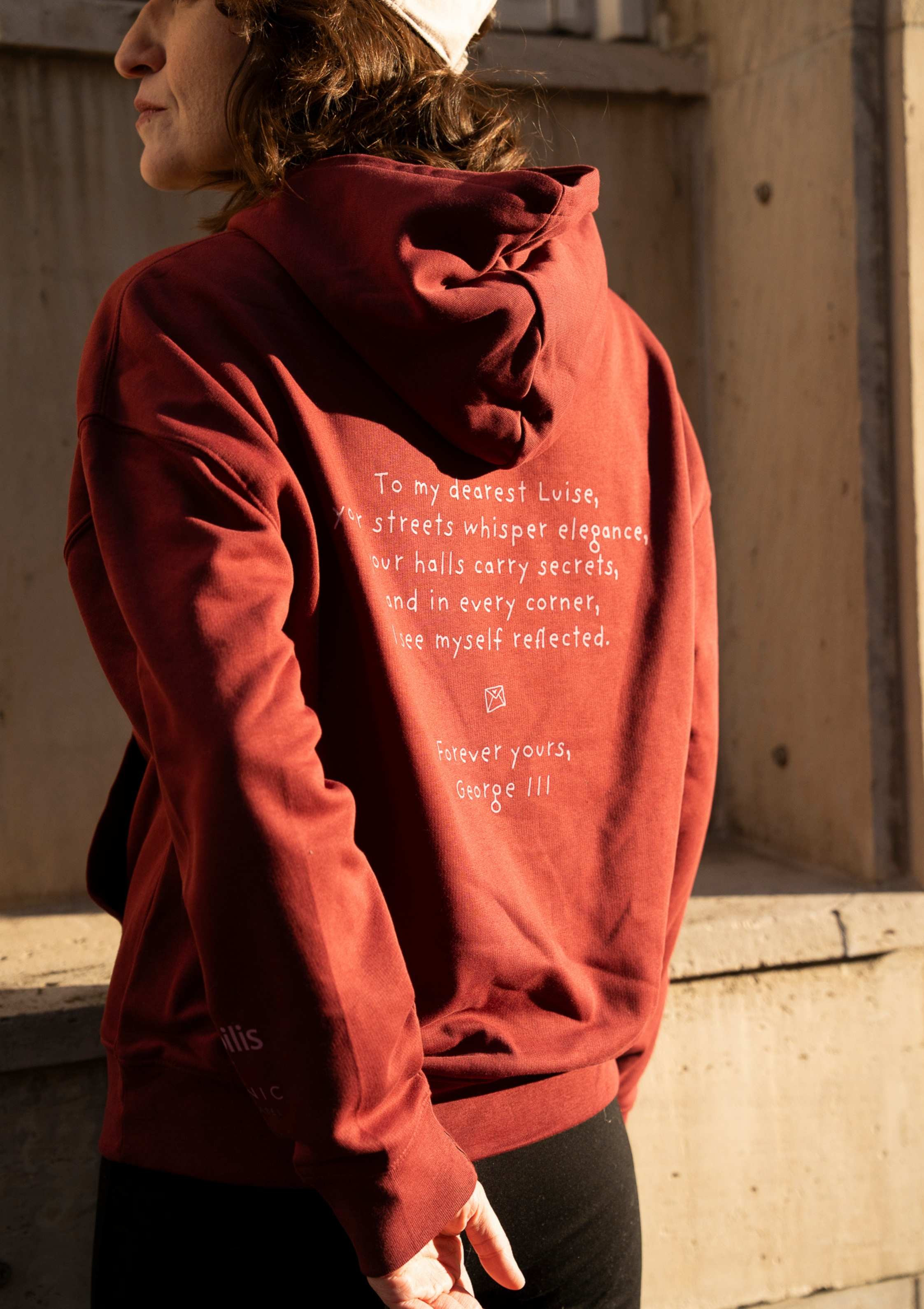 ICONIC greift zwei der geschichtlich bedeutendsten Straßen Hannovers auf: die Luisenstraße und die Georgstraße. Orte des Flanierens, des Handels, der Kultur und der Begegnung. Für uns stehen sie für ein Stück Hannover-DNA – klassisch, urban und voller Geschichten. Auch mit ihren historischen Namensgeber, Luise und George verbinden wir zwei prägende royale Figuren Hannovers: Königin Luise, Symbol für Eleganz, Kultur und das alte Hannover, und König George III., der als britischer König und Kurfürst von Hannover die Ära der Personalunion prägte und damit die internationale Bedeutung der Stadt stärkte. Der Hoodie bringt diese beiden historischen Kapitel zusammen – als modernes, ikonisches Streetwear-Piece, das die königlichen Wurzeln Hannovers subtil, zeitgemäß und mit einem Augenzwinkern neu interpretiert.