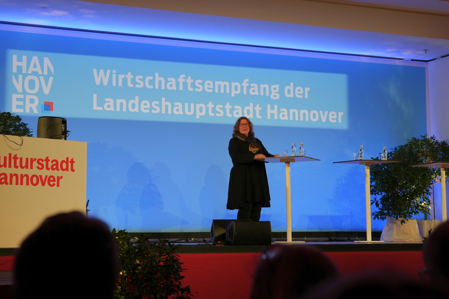 Wirtschaftsdezernentin Anja Ritschel begrüßte die Gäste mit den Worten: „Hannover ist vielfältig, resilient und zukunftsorientiert.“ Die Stadt habe in den vergangenen Monaten wichtige Fortschritte gemacht. Unter anderem bei der Digitalisierung des Bauantragswesens, der KI-gestützten Wohngeldbearbeitung und dem Aufbau eines digitalen Zwillings. Zugleich sei das Momentum entscheidend: „Der laute Knall darf uns daran erinnern, dass wir unsere Stärken selbstbewusst nach außen tragen müssen. Trommeln gehört zum Geschäft.“
